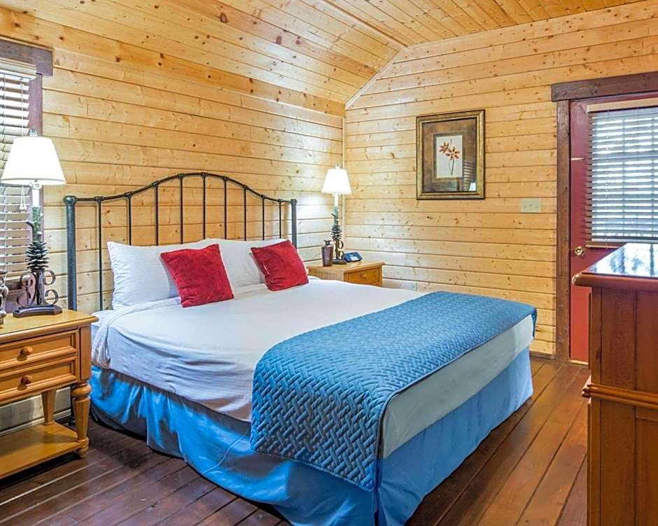 Accommodations span from a cozy King Room at 323 sqft to larger cabin and suite layouts. Choices include King Room (323 sqft), Queen Room (194 sqft), Cabin, 2 Bedroom (657 sqft), Cabin, 2 Bed, 2 Bedroom (657 sqft), Cabin, 2 Bedroom, Fireplace (700 sqft), Suite, Queen, Sofa Bed (506 sqft), and a 1 King Bed and 2 Twin Beds Suite (Non-Smoking).